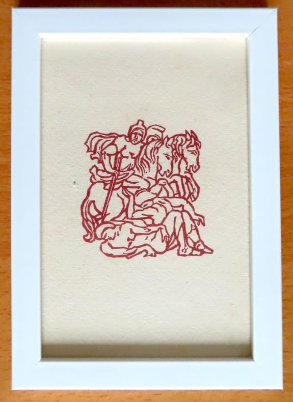 Gravure tirée à la presse à bras par Philippe Gonin, sur les bois d'Aristide Maillol. Dimension du cadre: 12 x 17 cm.