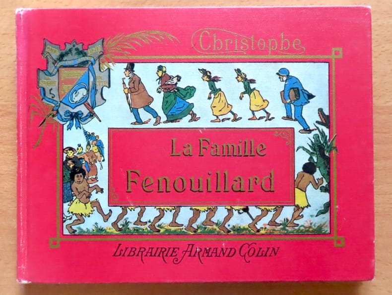 paris Armand Colin 1933 in-12 pleine percale un volume, reliure pleine percale vieux rose cartonnage éditeur à plaques spéciales pour les plats in-douze ( hard-back percale with special cover editor in-12) (18,3 x 12 cm), dos titre or et illustré au coq or, titre doré et ornementation en encadrement or "au coq", Bibliothèque du petit français en haut à gauche dans un medaillon doré, orné d'illustrations à chaque page en noir par Christophe, 262 pages + (9 p. de pièces justificatives + Table), 1933 Paris Librairie Armand Colin Editeur,