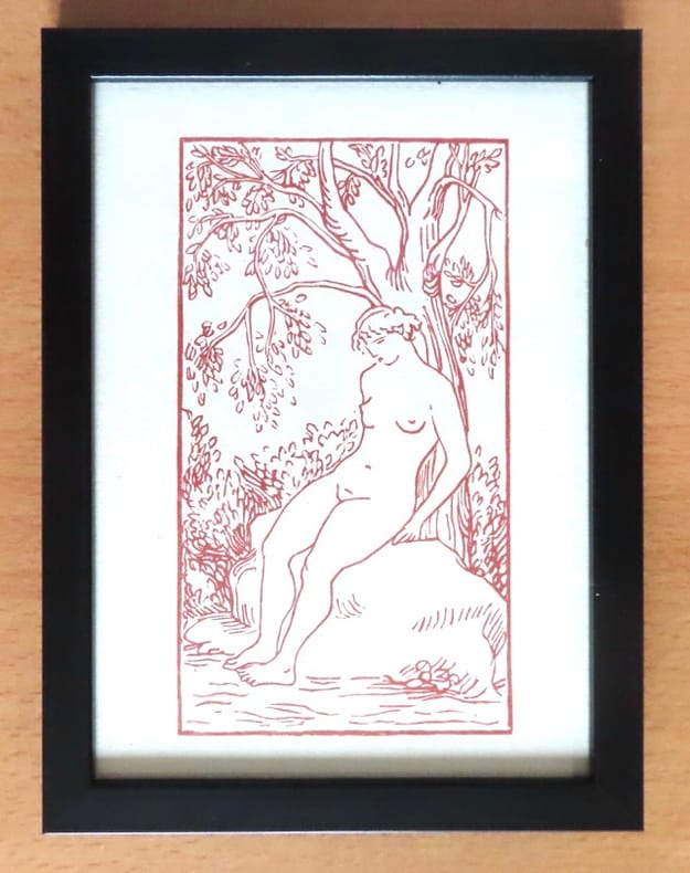 Gravure tirée à la presse à bras par Philippe Gonin, sur les bois d'Aristide Maillol. Dimension du cadre: 15 x 20 cm.