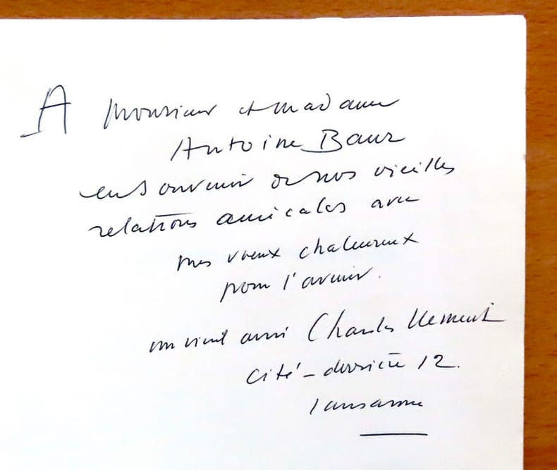 Edition originale au tirage limité à 2000 exemplaires numérotés, celui-ci un des 1970 sur vergé fin ivoire (192). Exemplaire agrémenté d'un envoi autographe signé de Charles Clément à Antoine Baur.