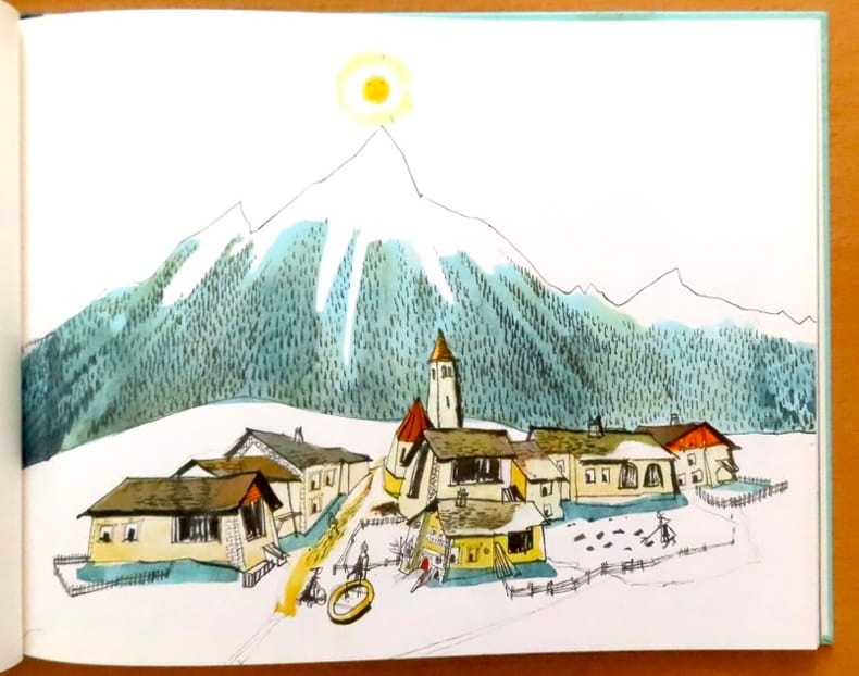 Célèbre et délicieuse histoire se passant dans les Grisons - à Guarda, plus exactement, le village (élu le plus beau de Suisse) en étant très fier ! Illustré à toutes pages et en couleurs par Aloïs Carigiet. L'illustrateur a reçu pour son oeuvre la médaille Hans Christian Andersen. Ici dans un format inférieur aux albums habituels.