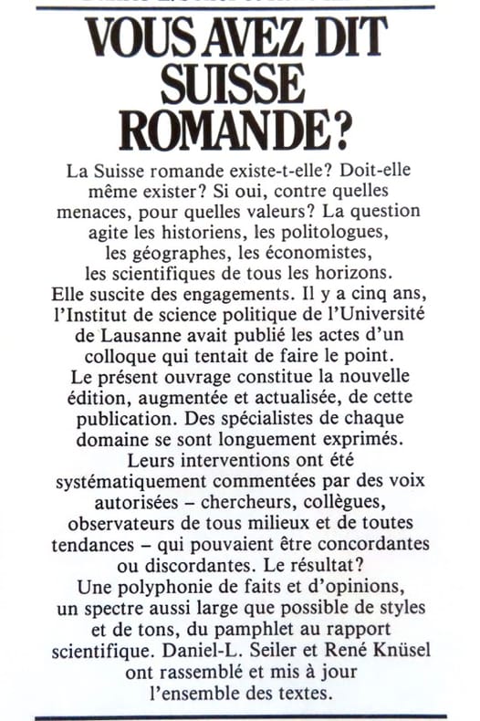 Contributions, entre bien d'autres, de Claude Torracinta, Eric Burnand, Jean-Pierre Vouga,. . . 2e édition augmentée.