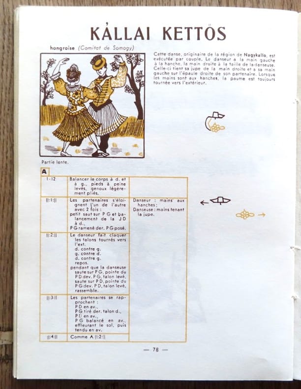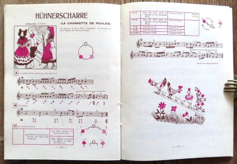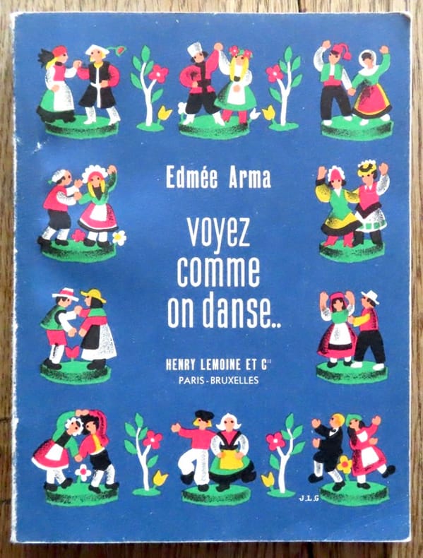 Paris/Bruxelles, Henry Lemoine et Cie, 1946. Petit in-8 broché, couverture illustrée (légèrement frottée en bords). Pour apprendre toutes sortes de danses, avec schémas explicatifs. Tout à fait ravissant !