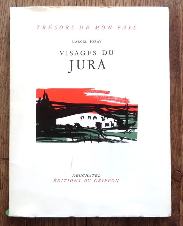 Lausanne, Editions 24 Heures 1978, 233x160mm, 190pages, demi-maroquin rouge, titre au dos doré, plats décorés à l’encre de chine avec au centre le timbre poste émis lors de l’admission du Jura comme canton. Documents concerant Gilberte de Courgenay inséré dans le livre.
