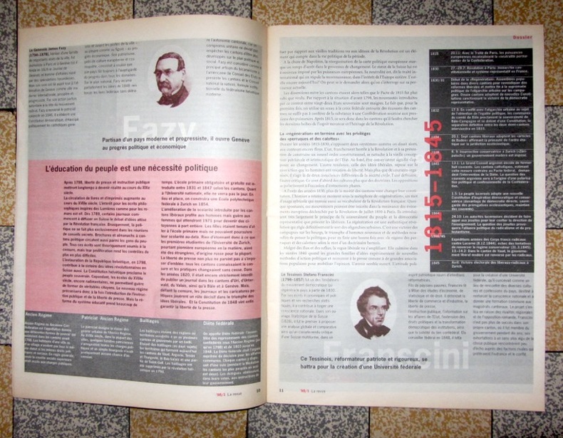 Revue parue simultanément en français, italien et allemand pour les 150 ans de l'Etat fédéral et les 200 ans de l'Helvétique. Illustré en noir.