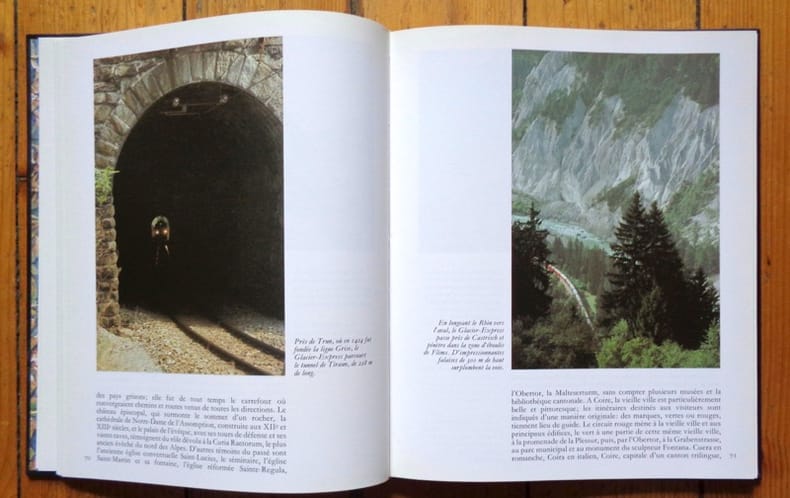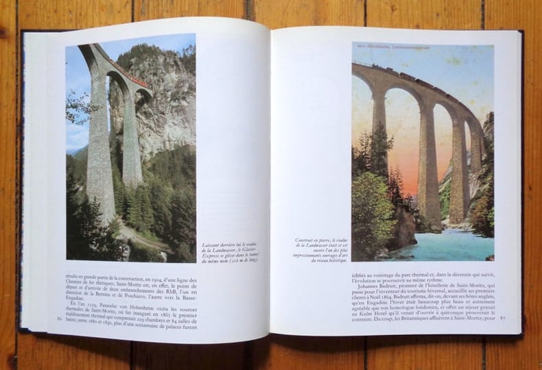 Éditions 24 Heures, Lausanne, 1983. Version française réalisée avec la collaboration du Chemin de fer touristique Blonay-Chamby. Beau livre richement illustré sur le train express le plus lent du monde. Le Glacier-Express est un défi aux Alpes. Il relie nos deux plus célèbres stations touristiques, entre le Cervin valaisan et le massif grison de la Bernina, par 290 kilomètres de voies lancées à travers l'une des régions les plus sauvages de 'Europe grâce à 300 ponts et tunnels.