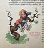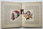 Broché à cahier unique agrafé, dos de papier chagriné, jaune, plats de carton fin couverts de papier imprimé. Exemplaire complet ; feuillets propres, papier bien conservé et sans inscription manuscrite. En couverture, petites traces et gouttes d'encre rouge indélébile. Quelques discrètes griffures sans atteinte notable du décor. Idem au plat inférieur. Les illustrations présentent de belles couleurs intenses et fraîches. Les mises en page sont toujours inventives et soignées. Bel exemplaire de cet album en édition originale.