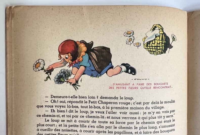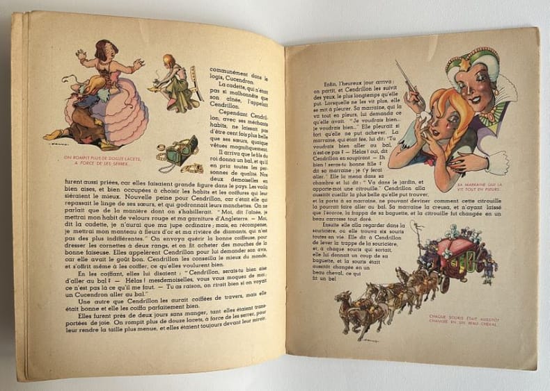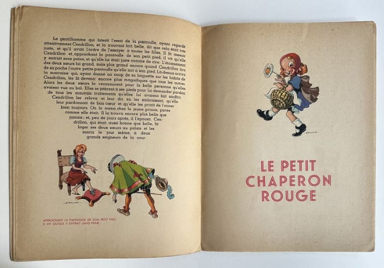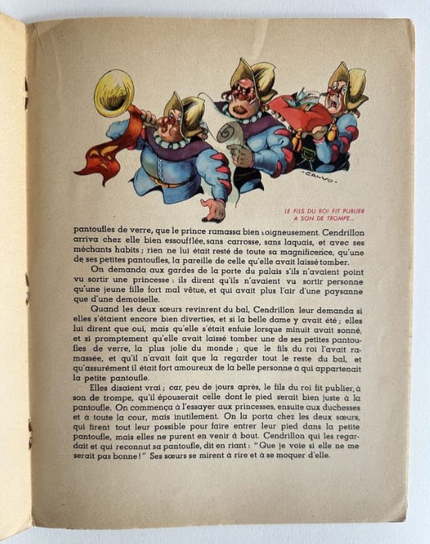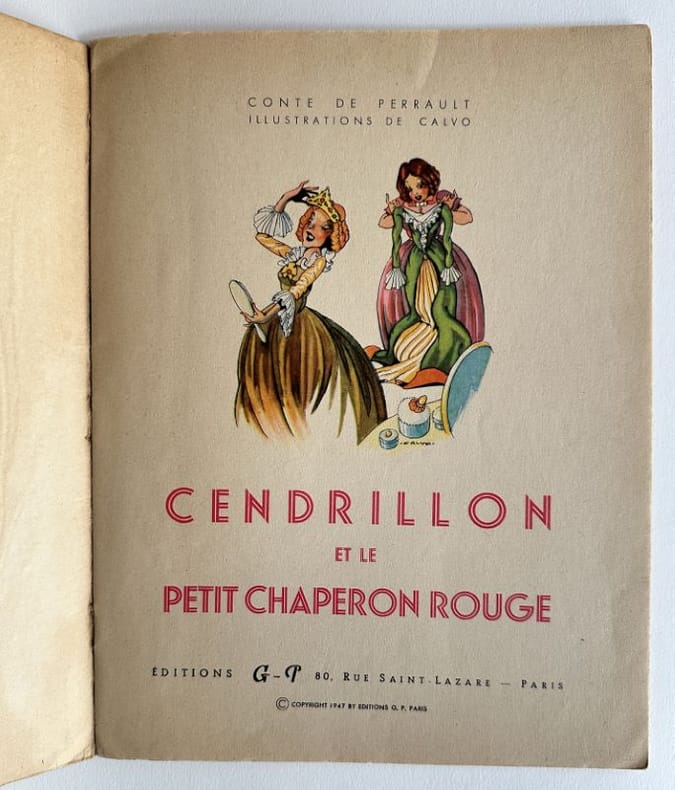 Paris, Editions G. P., 1 vol. (27,2 x 21 cm) de 16] p. dont les deux pages de titre et un "achevé d'imprimer en septembre 1947 sur les presses de M. Déchaux". Sur papier velin, assez fort, mat. Superbes illustrations composées dans le texte sur chacune des pages. Edition originale. Edmond-François Calvo, dit Calvo (1892-1957) : français, dessinateur et scénariste de bande dessinée, caricaturiste de presse et illustrateur.Charles Perrault (1628-1703) : auteur.