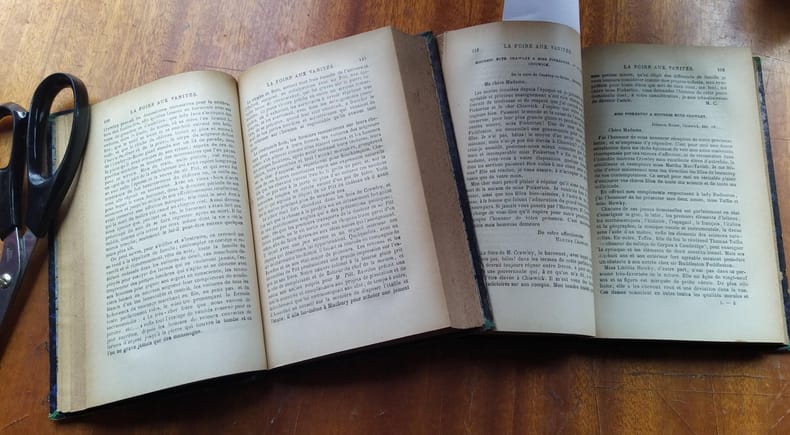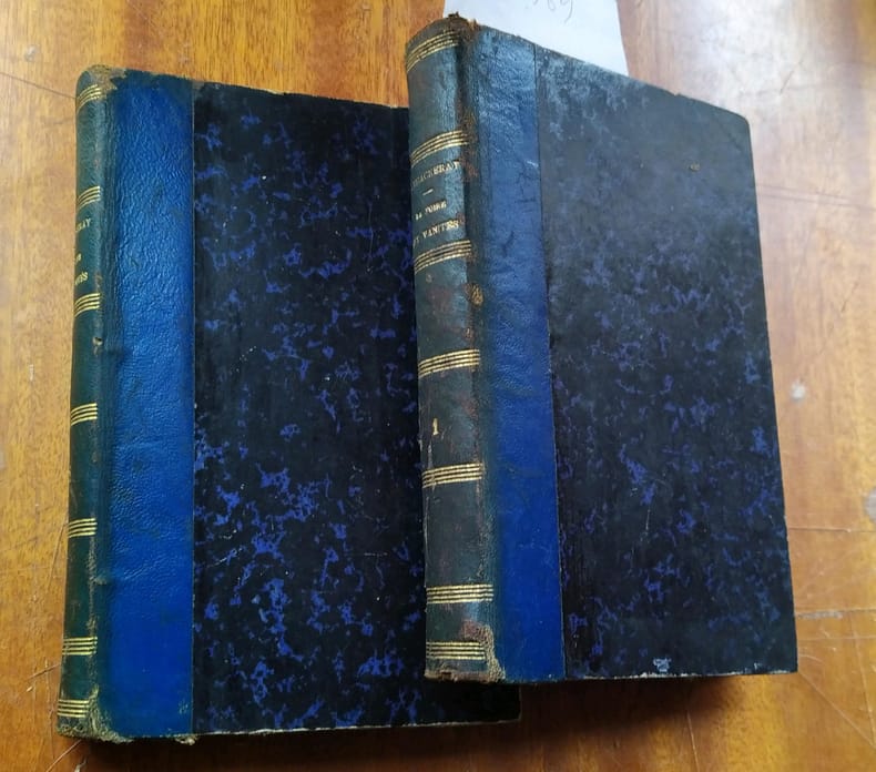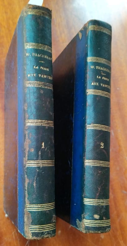 Édition originale de la traduction française, peu commune. La première édition anglaise a paru en feuilleton dans le magazine Punch entre 1846 et 1847. L’un des chefs-d’œuvre du roman victorien, par l’écrivain britannique qui fut le grand rival de Dickens, William Makepeace Thackeray (Alipur, Calcutta, 1811-Londres, 1863). Dans ce vaste tableau de la société anglaise du xixe siècle, qui procure encore de nos jours « une expérience de lecture prodigieuse », Thackeray « se montre enfin [...] romancier authentique et complet. Tous ses récits précédents avaient un caractère parodique; il les écrivait sous divers déguisements; il n’avait jamais encore été lui-même dans une œuvre de longue haleine. Dans La Foire aux Vanités il apparaît enfin sous son vrai jour et manifeste sa capacité de faire vivre des personnages, d’agencer un récit, de peindre une vaste fresque, enfin, et surtout, d’engager avec le lecteur une conversation ininterrompue qui lui permet d’exprimer ses opinions sur une grande variété de sujets généraux et particuliers » (Sylvère Monod). Quant à la traduction de Georges Guiffrey (1827-1887), elle est encore aujourd’hui la version française de référence de Vanity Fair. Exemplaire agréablement relié à l’époque ; les coins inférieurs sont un peu émoussés. Provenance : François Mitterrand (vente du 29 octobre 2018, no 640). Références: Sylvère Monod, préface, in W. Thackeray, La Foire aux Vanités, Paris Gallimard, 1994.