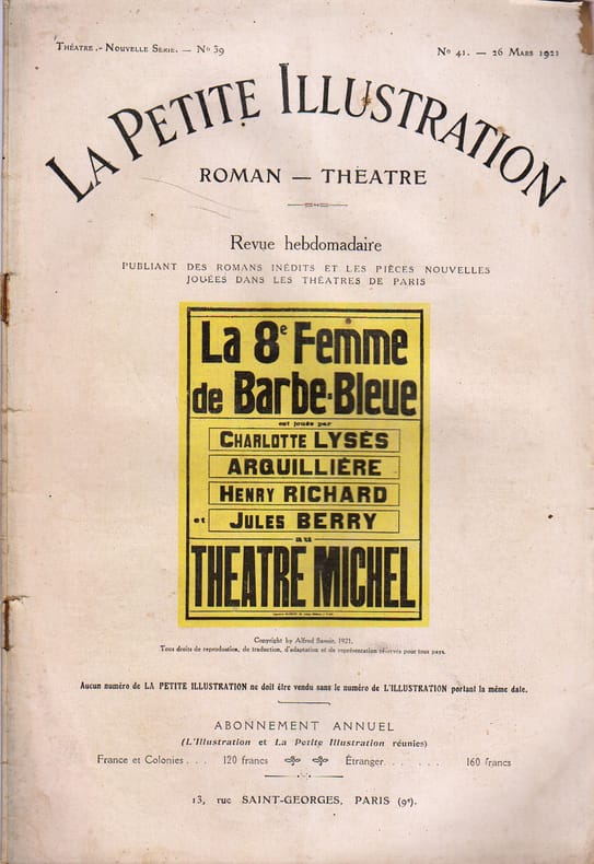 Périodique. Créée en 1921 au Théâtre Michel. La Petite Illustration (Collection : Théâtre), 26 mars 1921.
