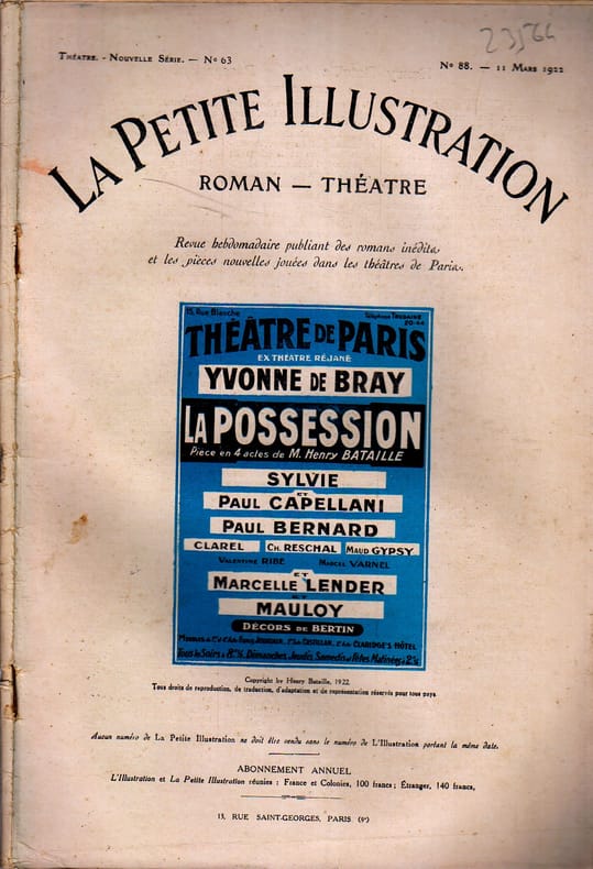 Périodique. Créée en 1921 au Théâtre de Paris. La Petite Illustration (Collection : Théâtre), 11 mars 1922.