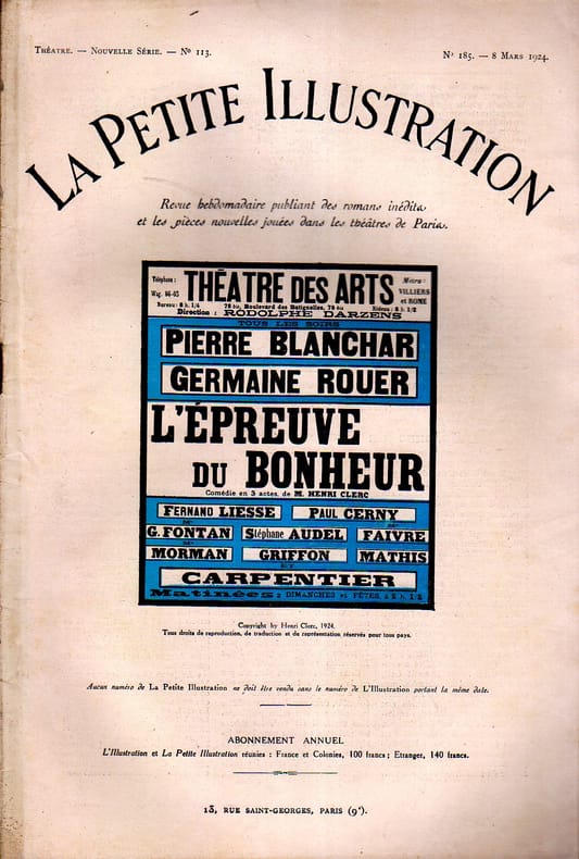 Périodique. Créée en 1924 - à Lyon. La Petite Illustration (Collection : Théâtre), 8 mars 1924.