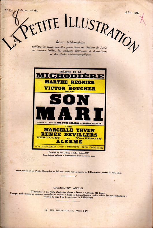 Périodique. Créée en 1927 au théâtre de la Michodière. La Petite Illustration (Collection : Théâtre), 28 mai 1927.