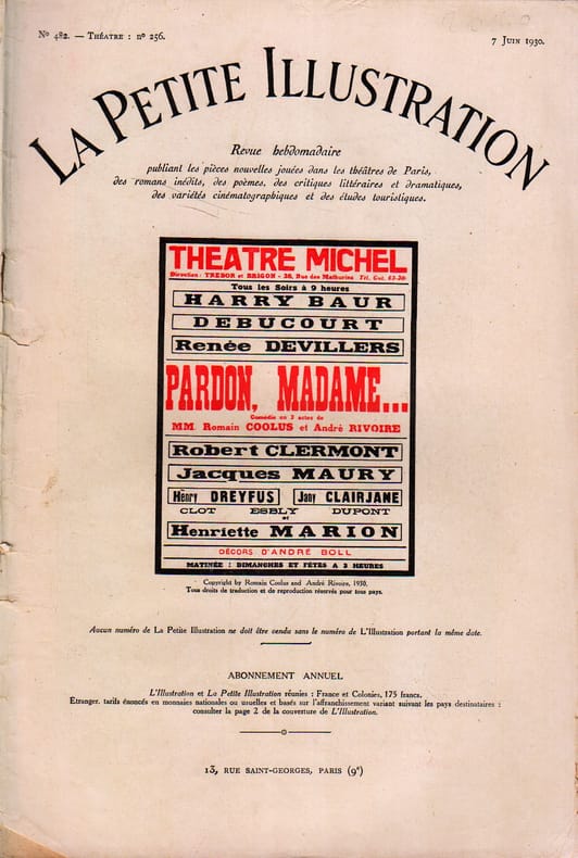 Périodique. Créée en 1930 au théâtre Michel. La Petite Illustration (Collection : Théâtre), 7 juin 1930.