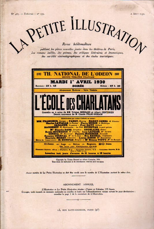 Périodique. Créée en 1930 au théâtre de l'Odéon. La Petite Illustration (Collection : Théâtre), 2 août 1930.