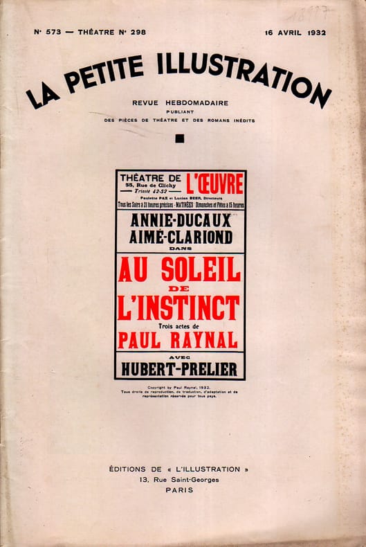 Périodique. Créée en 1932 au théâtre de l'oeuvre. La Petite Illustration (Collection : Théâtre), 16 avril 1932.