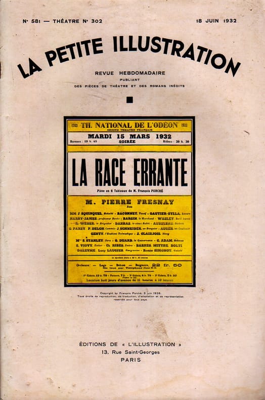 Périodique. Créée en 1932 au théâtre de l'Odéon, avec Pierre Fresnay. La Petite Illustration (Collection : Théâtre), 18 juin 1932.