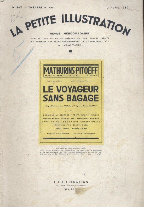 Périodique. Créée en février 1937 au théâtre des Mathurins, musique de Darius Milhaud, mise en scène de Pitoëff. L'Illustration (Collection : Théâtre), 10 avril 1937.