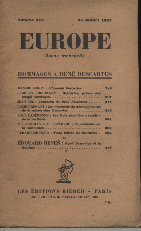 Articles par : Maxime Leroy - Georges Friedmann - Jean Luc - Lucie Prenant - Paul Laberenne - N. Guterman et H. Lefebvre - Gérard Michaud et Edouard Benes. PHOTOS sur DEMANDE. ...................... Photos sur demande ..........................