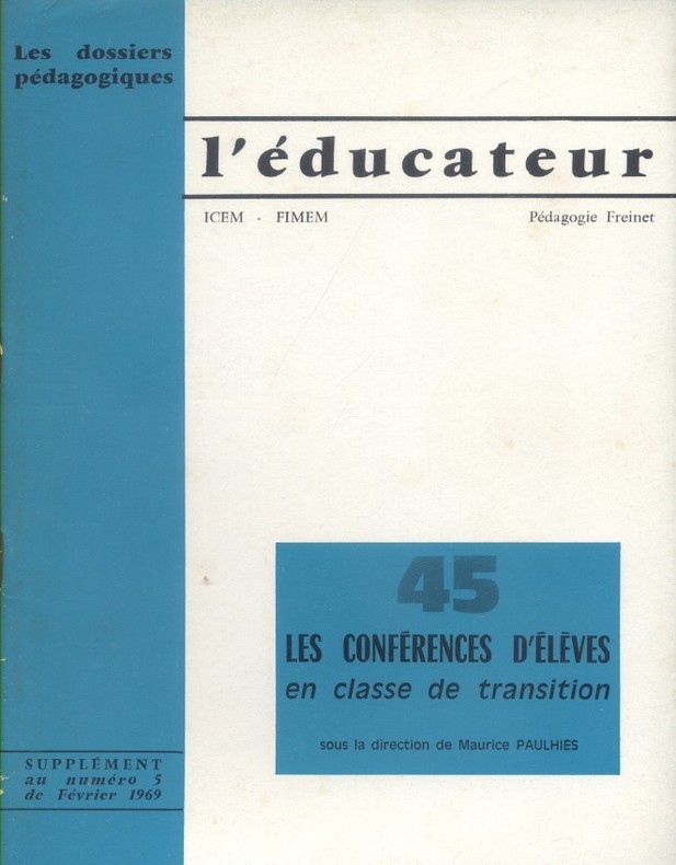 Livre. Supplément à l'Educateur. Editions de l'Institut coopératif de l'Ecole Moderne - Cannes (Collection : Les dossiers pédagogiques. N° 45), Février 1969.