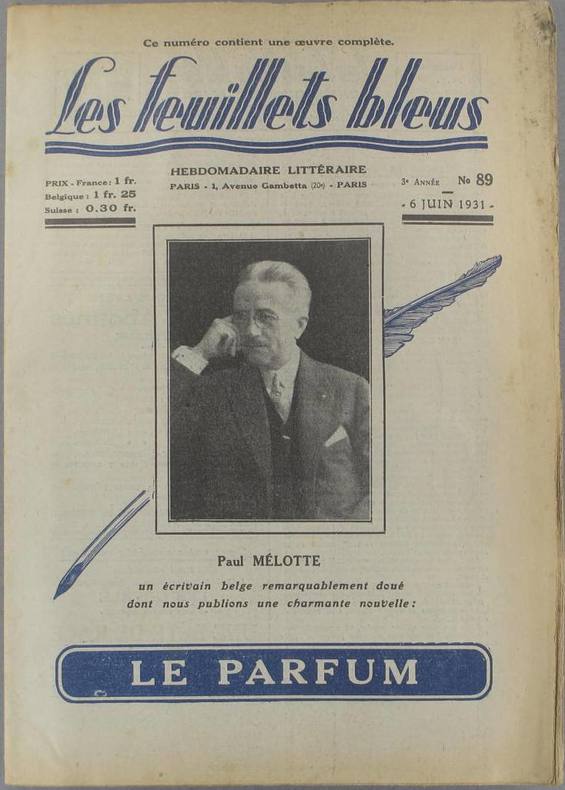 Périodique. Hebdomadaire littéraire. Sur la première page, photo de Paul Mélotte Les feuillets bleus, Paris, 6 juin 1931.