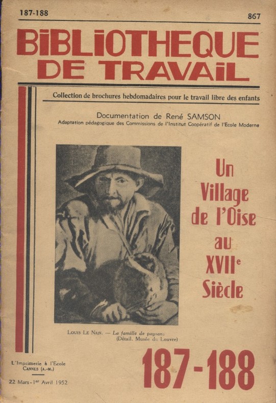 Livre. Collection de brochures hebdomadaires pour le travail libre des enfants. Documentation de René Samson. Adaptation pédagogique des commissions de l'Institut Coopératif de l'Ecole Moderne. L'imprimerie à l'école (Collection : BT N° 187-188), Cannes, Mars-Avril 1952.