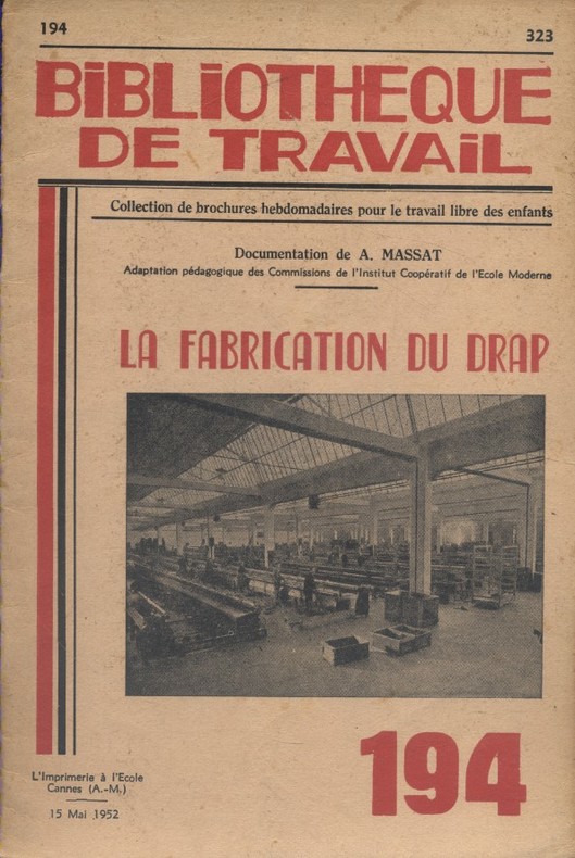 Livre. Collection de brochures hebdomadaires pour le travail libre des enfants. Documentation de A. Massat . Adaptation pédagogique des commissions de l'Institut Coopératif de l'Ecole Moderne. L'imprimerie à l'école (Collection : BT N° 194), Cannes, Mai 1952.