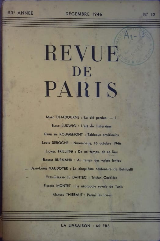 Périodique. Revue de Paris, Décembre 1946.