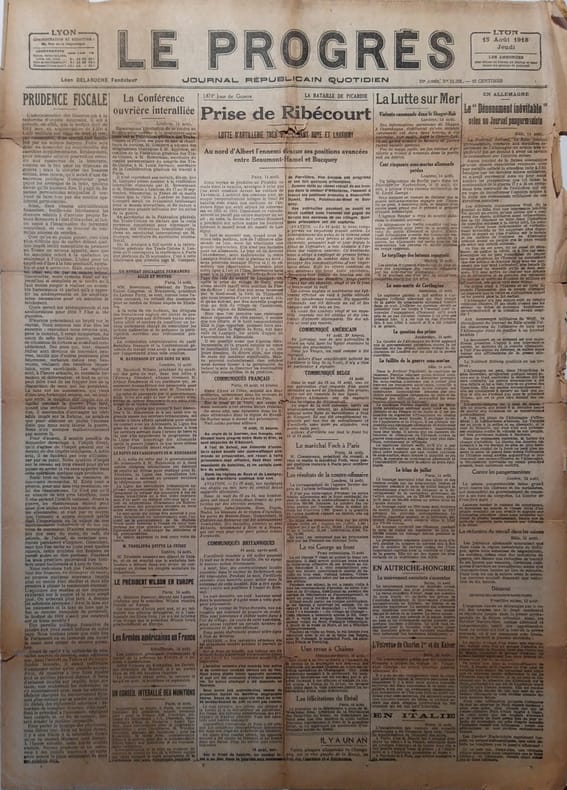 Périodique. Fondateur : Léon Delaroche. Le Journal de Lyon, 15 août 1918.