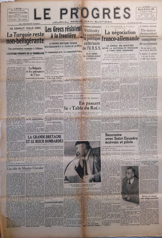 Périodique. Fondateur : Léon Delaroche. Le Journal de Lyon, 30 octobre 1940.