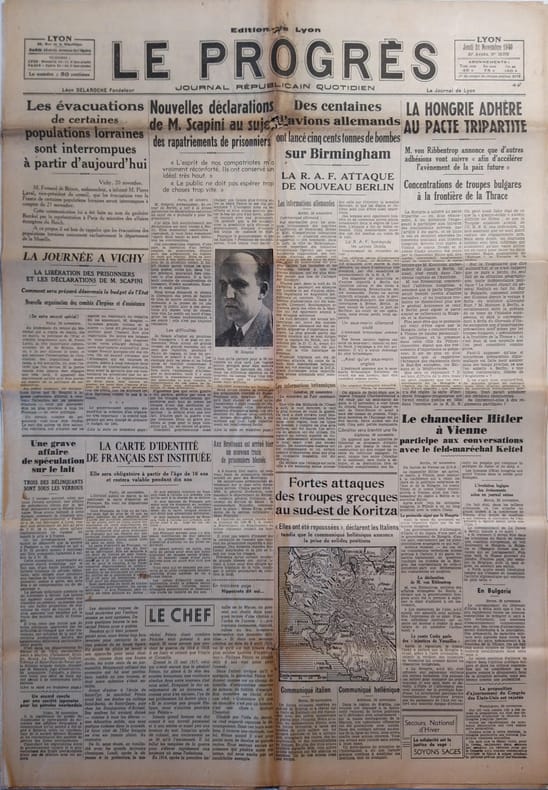 Périodique. Fondateur : Léon Delaroche. Le Journal de Lyon, 21 novembre 1940.