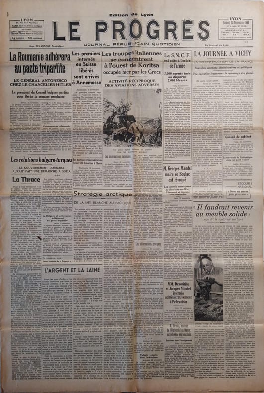 Périodique. Fondateur : Léon Delaroche. Le Journal de Lyon, 23 novembre 1940.