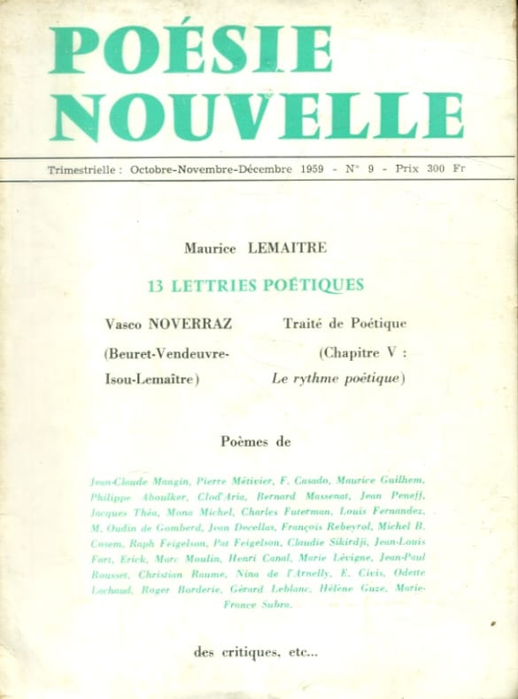 Périodique. Traité de poétique chapitre V par Maurice Lemaître et texte d'Isidore Isou. Editions Jean Grassin, 1959.