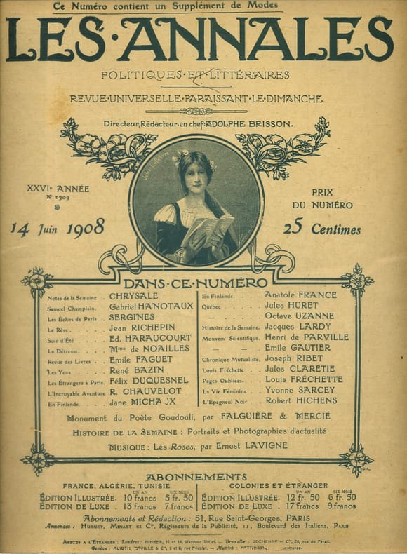 Périodique. Les Annales Politiques et Littéraires, 14 juin 1908.