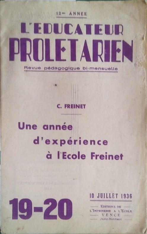 Livre. Numéro spécial de l'Educateur Prolétarien. Editions de l'Imprimerie à l'école, Vence (A.-M., 10 juillet 1936.
