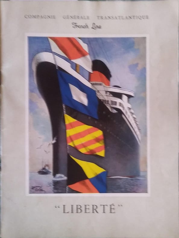 COMPAGNIE GENERALE TRANSATLANTIQUE Illustration double page par Marin-Marie.