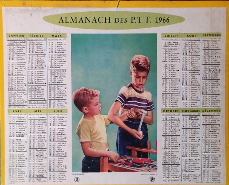 Vieux papier. Au verso : levers et couchers du soleil et de la lune. P.T.T (Collection : Imprimerie Oberthur), 1966.