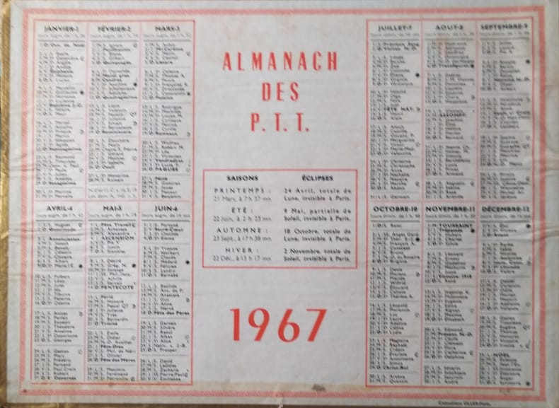 Vieux papier. P.T.T (Collection : Calendriers Oller), 1967.