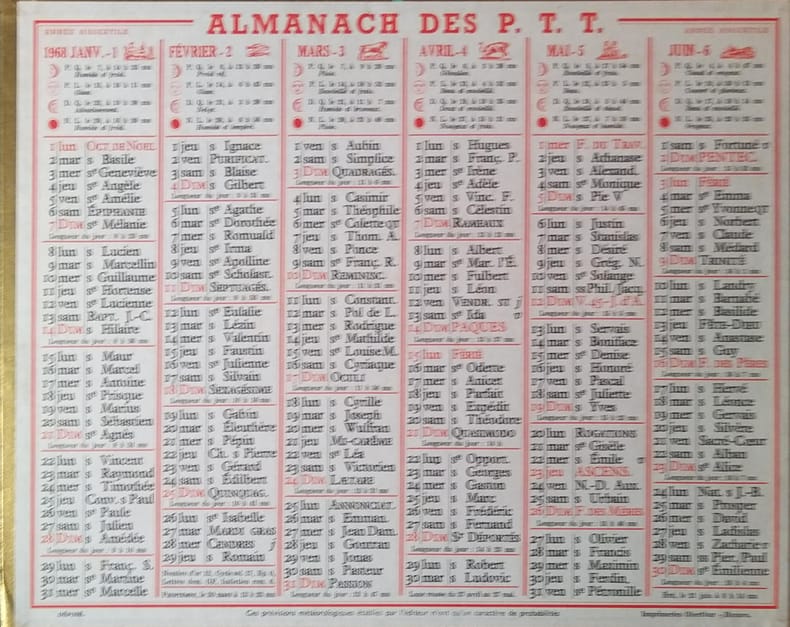Vieux papier. P.T.T (Collection : Calendriers Oller), 1968.