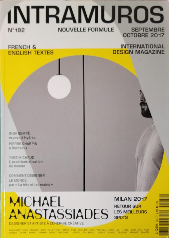 Périodique. Michel Anastassiades designer et artiste, Inga Sempé, Yves Michaud... French and english texts. Intramuros, Paris, Septembre-Octobre 2017.