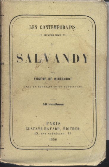 Livre. Avec un portrait et un autographe. Editions Gustave Havard (Collection : Les contemporains), 1856.