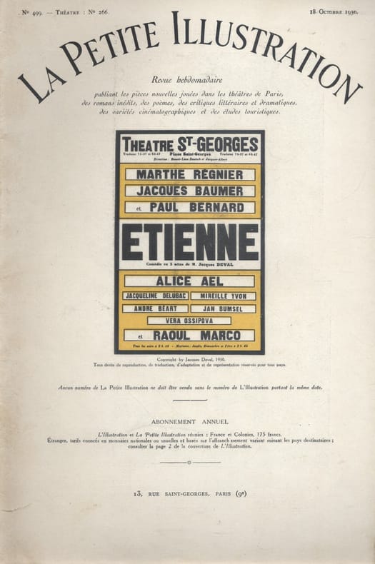 Périodique. Créée en 1930 au théâtre Saint-Georges. La Petite Illustration (Collection : Théâtre), 18 octobre 1930.