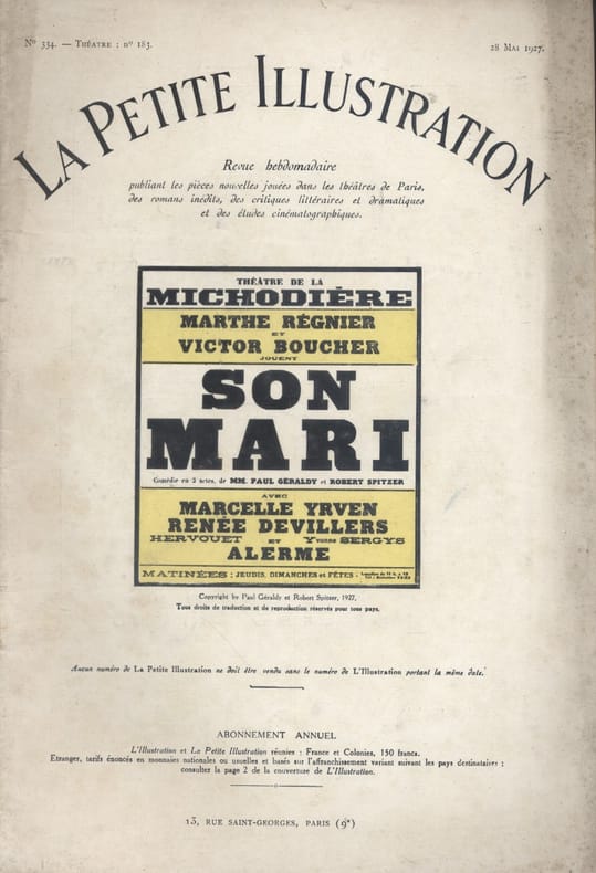 Périodique. Créée en 1927 au théâtre de la Michodière. La Petite Illustration (Collection : Théâtre), 28 mai 1927.