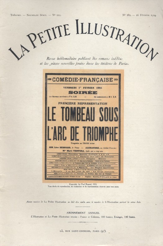 Périodique. Créée en 1924 - à la Comédie-Française. La Petite Illustration (Collection : Théâtre), 16 février 1924.