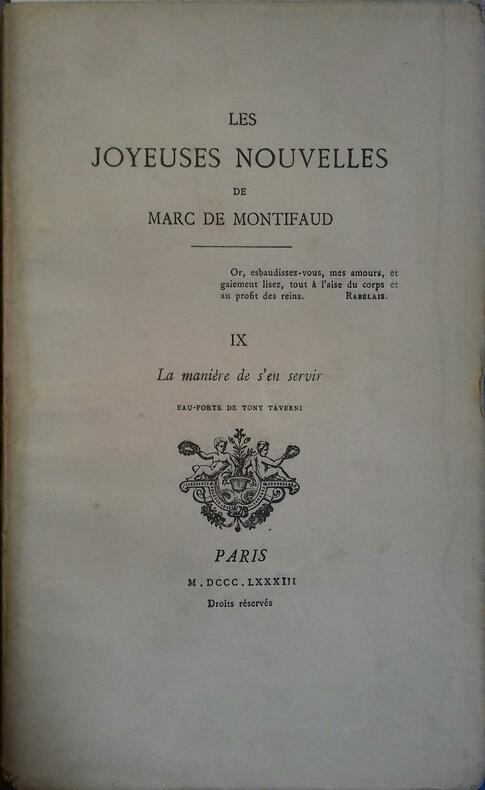 Livre. Eau-forte de Tony Taverni en frontispice. Paris, 1883.