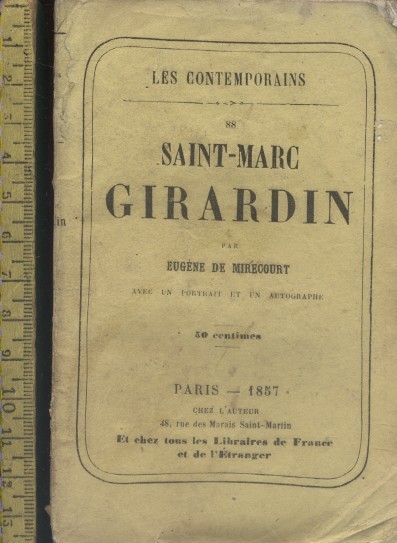Livre. Avec un portrait et un autographe. Chez l'auteur (Collection : Les contemporains), 1857.