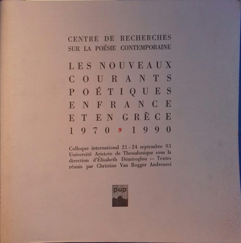 Livre. Colloque international, septembre 1993 - Université Aristote de Thessalonique sous la direction d'Elisabeth Démiroglou. Publications de l'Université de Pau, 1995.