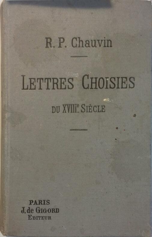 Voltaire au cardinal de Bernis, abbé de Chaulieu, Helvétius, Marmontel, Jean-Jacques Rousseau. Etc...- Vauvenargues à Mirabeau, Voltaire, etc... - De Brosses à Voltaire. - Jean-Jacques Rousseau à Voltaire, etc... - d'Alembert à Voltaire. - Buffon à Voltaire, etc... - Le Cardinal de Bernis à Voltaire. - Mirabeau à La Fayette, Sieyès, etc... - Mademoiselle de Launay à Fontenelle. - Madame Du Deffand à Voltaire. - Madame d'Epinay à Jean-Jacques Rousseau. - Madame Roland à tous les siens. Etc...