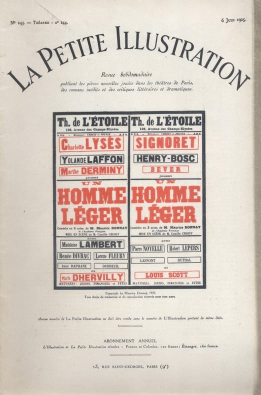 Périodique. Créée en 1925, au théâtre de l'Etoile. La Petite Illustration (Collection : Théâtre), 6 juin 1925.