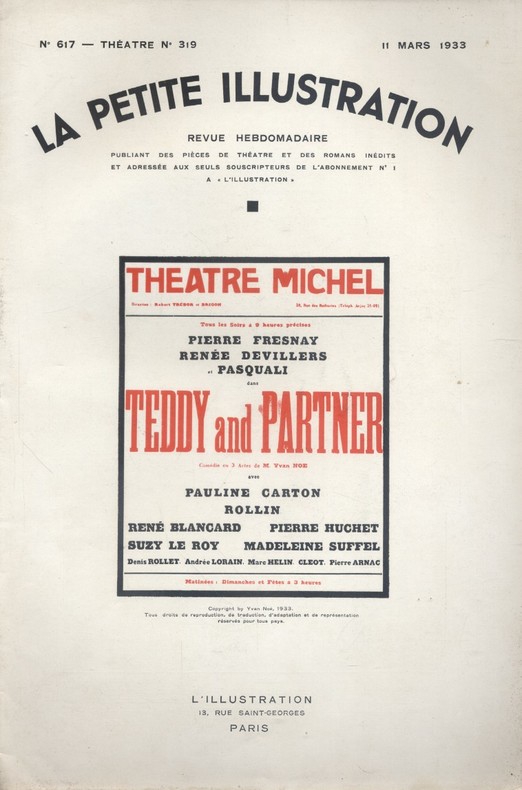 Périodique. Créée en mars 1933 au Théâtre Michel, avec Pierre Fresnay - Pauline Carton, etc. L'Illustration (Collection : Théâtre), 11 mars 1933.